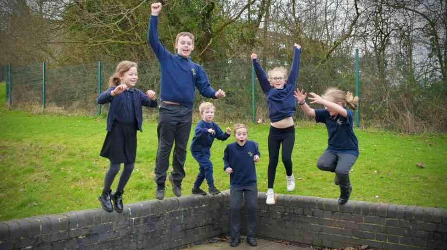 Image: Students at Coppice Valley Primary School in Harrogate jump for joy in the space that will become their ‘go-outside classroom.’